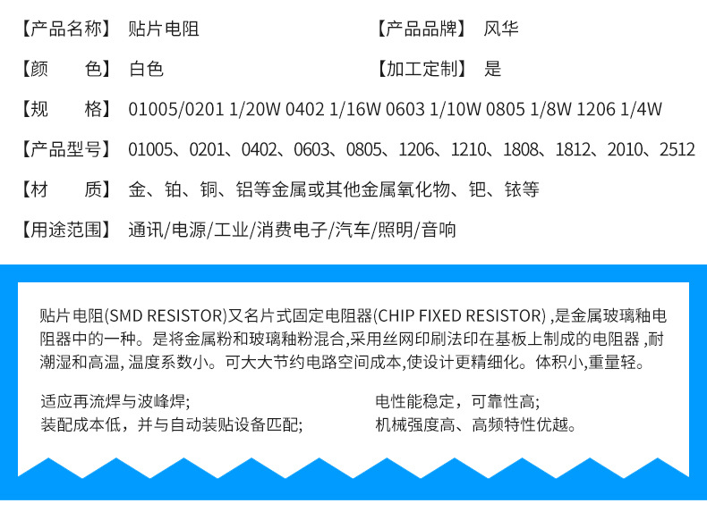 公司主要代理的電子元器件產(chǎn)品有:電阻,電容,電感,二/三極管,IC等電子元器件。 其品牌有:國巨(YAGEO),三星(SAMSUNG),風(fēng)華(FH),立?。↙ELON),厚聲(Uniohm), 村田(muRata), AVX, 威迪(Windy),先科(ST),長電(CJ),佰鴻,億光,ATMEL等。
